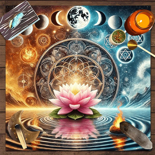 Mystical Mandala Moon Phases Wicca Altar Cloth - Witchcraft Tarot Tablecloth for Reading Divination