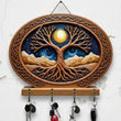 2D Celtic Tree of Life Key Holder 4 Metal Hooks - Moon Tree Pagan Wood Key Rack