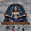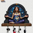 2D Earth Mother Key Holder 4 Metal Hooks - Gaia Goddess Pagan Wood Key Rack