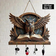 2D Elegant Owl Wooden Key Holder with Four Metal Hooks