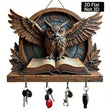 2D Elegant Owl Wooden Key Holder with Four Metal Hooks-MoonChildWorld