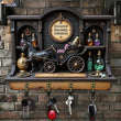 2D Magic Carriage Witchy Wood Key Rack - Halloween Key Holder 4 Metal Hooks