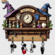 2D Magic Wizard Key Holder 4 Metal Hooks - Witch Wood Key Rack