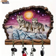 2D Moon Wolves Key Holder 4 Metal Hooks - Spiritual Wood Key Rack