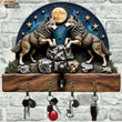 2D Moonlit Wolves Wooden Key Holder with 4 Metal Hooks - Wolf Wood Key Rack