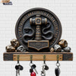 2D Thor's Hammer Wooden Key Holder with 4 Metal Hooks - Snake Gothic Wood Key Rack