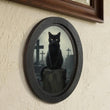 Black Cat Gothic Wooden Oval Frame - Halloween Oval Wall Art for Witch Home Decor