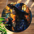Black Cat Witch Suncatcher Mystic Acrylic Round Sign