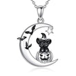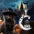 Crescent Moon Black Cat Witchy Necklace Halloween Jewelry