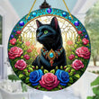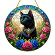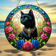 Floral Black Cat Suncatcher Witchy Acrylic Sign