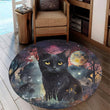 Moon Black Cat Round Rug Gothic Rug-MoonChildWorld