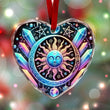 Sun Goddess Pentagram Wicca Christmas Heart-Shaped Crystal Glass Ornament