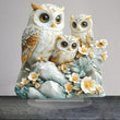 The White Owls Statue 2D Flat Acrylic Figurine - Family Owl Table Ornament Desktop Decor
