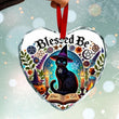 Witchy Black Cat Wicca Christmas Heart-Shaped Crystal Glass Ornament