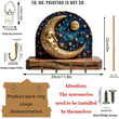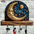 2D Crescent Moon Star Wood Key Rack - Celestial Moon Key Holder 4 Metal Hooks