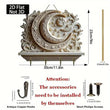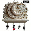 2D Crescent Moon & Star Wooden Key Holder with 4 Metal Hooks - Wicca Wood Key Rack