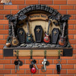 2D Dark Tombstone Guitar Key Holder 4 Metal Hooks - Halloween Gothic Wood Key Rack