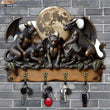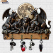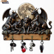 2D Gargoyle Gothic Key Holder 4 Metal Hooks - Witchy Wood Key Rack