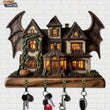 2D Gothic Bat Ghost House Key Holder 4 Metal Hooks - Halloween Wood Key Rack-MoonChildWorld