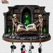 2D Gothic Medieval-Style Wooden Key Holder with 4 Metal Hooks - Spooky Skeletons Witchy Key Rack