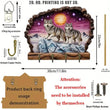 2D Moon Wolves Key Holder 4 Metal Hooks - Spiritual Wood Key Rack