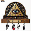 2D Occult All-Seeing Eye Key Holder 4 Metal Hooks - Witchy Wicca Wood Key Rack