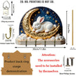 2D Rabbit on Moon Key Holder 4 Metal Hooks - Wicca Pagan Wood Key Rack Easter Home Decor