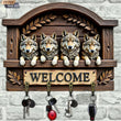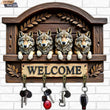 2D Wolves Key Holder 4 Metal Hooks - Mystic Wolf Wood Key Rack