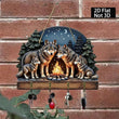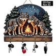 2D Wolves Wooden Key Holder with Four Metal Hooks