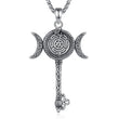 925 Sterling Silver Hecate Wheel Necklace Key Snake Triple Moon Goddess Pendant Pagan Witch Jewelry-MoonChildWorld