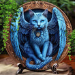 Blue Cat Winged Wall Art Gothic Cat Metal Sign for Halloween