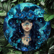 Blue Floral Witch Wall Sign Occult Home Decor Witchy Metal Sign