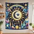 • Vibrant celestial design featuring the moon, stars, and mystical symbols.