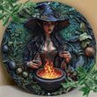 Cauldron and Dark Witch Metal Sign Mystical Halloween Decor