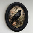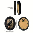 Floral Crow Retro Gothic Wall Art - Black Raven Wooden Oval Frame Halloween Wall Decoration