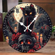 Gothic Black Cat & Skull Wall Clock Halloween Wall Decor