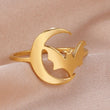 Experience enchanting darkness with this Gothic Moon Bat Ring Witch 🦇 for your Halloween look 🎃! Crafted from stainless steel, you'll enjoy the no rust, no allergy, anti-acid/anti-alkali, no deformation, and non-fading benefits that it brings!