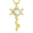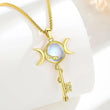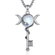 Hecate Triple Moon Goddess Necklace Moonstone Snake Key Wicca Pagan Jewelry