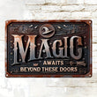 Magic Awaits Beyond These Doors Metal Sign Witch Wall Decor Halloween Welcome Sign