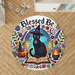 Magic Black Cat Round Rug Witchy Cat Carpet for Wiccan Home Decor