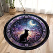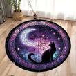 Moon and Black Cat Round Rug Gothic Witchy Cat Round Carpet for Christmas