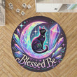Moon and Black Cat Round Rug Witchy Cat Carpet for Wiccan Home Decor
