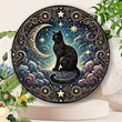 Mystical Moon Black Cat Metal Sign Occult Cat Home Decor