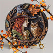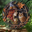 Owl and Witch Metal Sign Mystical Halloween Decor