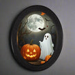 Pumpkin Lanterns Spooky Ghost Wooden Oval Frame - Gothic Oval Wall Art - Witchy Halloween Wall Decoration