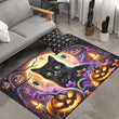 Spooky Cat Area Rug Gothic Black Cat Carpet for Halloween