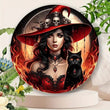 Spooky Witch and Black Cat Metal Sign Halloween Home Decor-MoonChildWorld