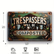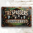 Trespassers Will Be Composted Metal Sign Witch Wall Decor Halloween Welcome Sign