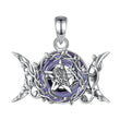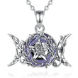 Triple Moon Goddess Necklace Purple Crystal Wiccan Moon Necklace 925 Silver Pagan Jewelry