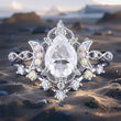 White Gemstones Triple Moon Ring Wiccan Jewelry